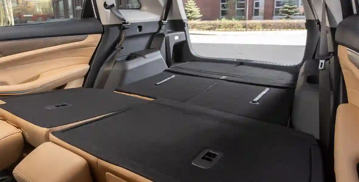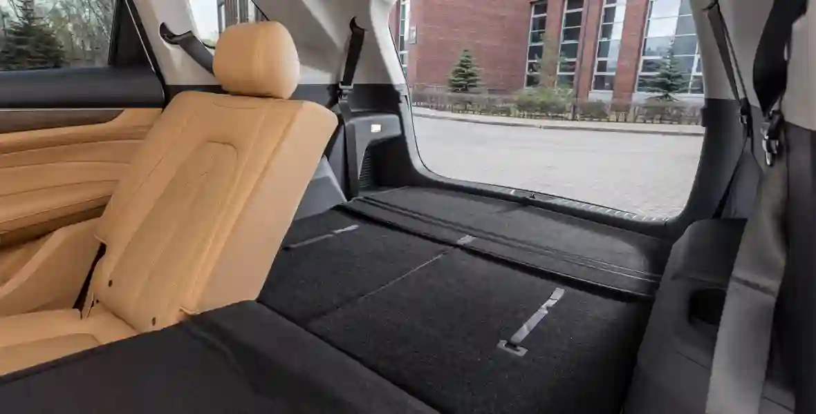 По духу и исполнению EVOLUTE i‑SPACE близок к кроссоверу i‑SKY этой же марки — дешево и сердито, при этом практично и современно. Но если практичность более компактной модели заключается в самокатной простоте конструкции и неисчерпаемой батарее, то козырь i‑SPACE это вместимость. Здесь есть третий ряд — пусть и не полноценный, но вполне функциональный. К слову, соплатформенный Aito M7 на 26 сантиметров длиннее, но едва ли удобнее для пассажиров багажника — там так же тесно.